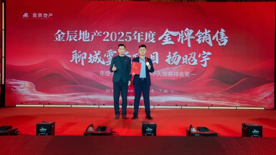 团队如山,聚力成峰。优秀的个体汇聚成凝聚的合力。地产第三区域德州雲河赋项目营销团队凭借卓越的战绩荣膺2025年度优秀团队,其营销经理张超荣获2025年度金牌营销经理。公司更以500g纯金金牌重奖营销经理。这不仅是物质的褒奖,更是金辰地产价值观的无声宣言:人才是企业发展的核心引擎,对奋斗者的尊崇,永远不止于言语,更在于实实在在的回馈。
