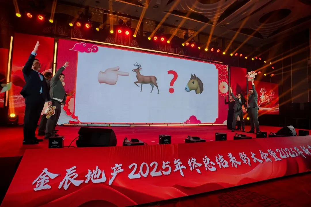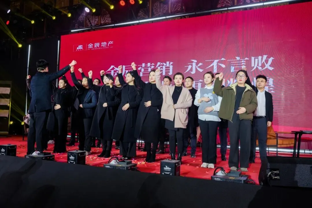 创新致胜 行稳致远。晚会尾声,主持人引领全体家人回顾来时路、展望新征程,全方位展现金辰地产的产品匠心、企业担当、服务理念与营销智慧,让在场每一位员工更清晰感知到公司的硬核实力与无限潜力。