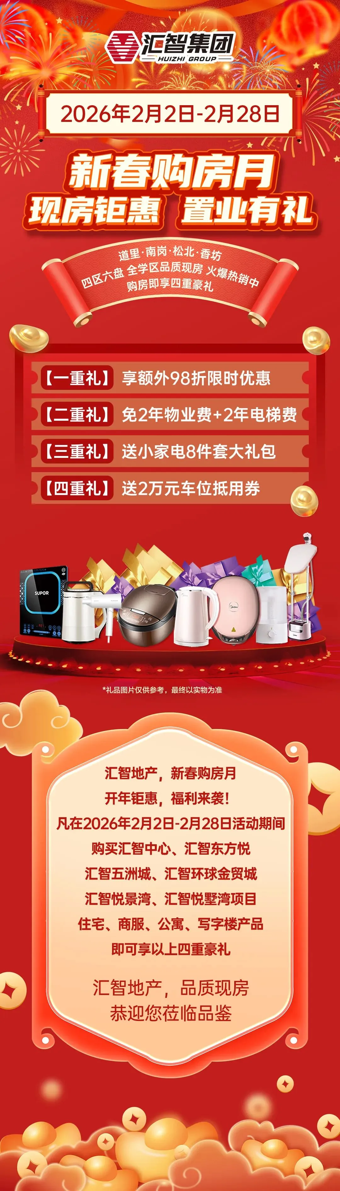 >【汇智地产-新春购房月】2月2日-28日,买六盘全学区品质现房,即享四重钜惠豪礼!置业无忧,恭迎品鉴!