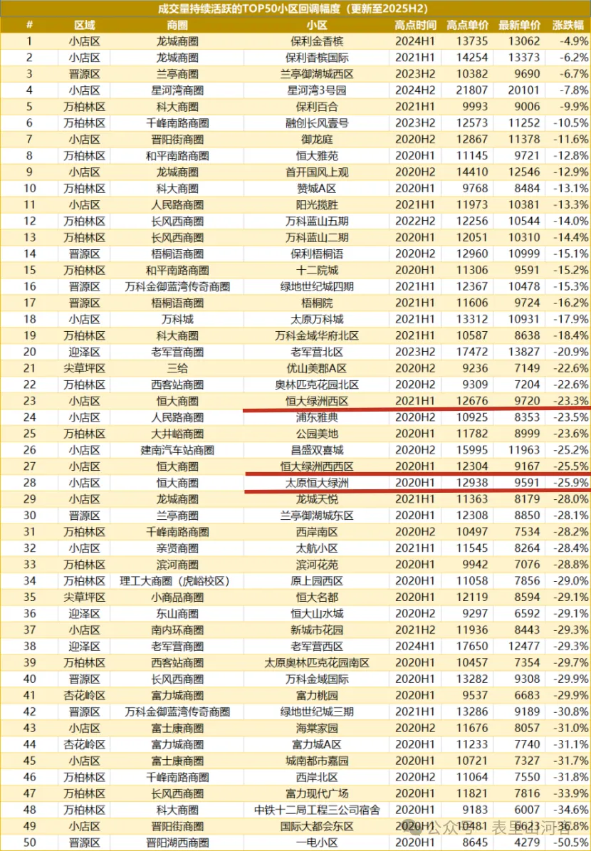 这几年楼市下行,今天我们来看看在太原各小区二手房市场中,