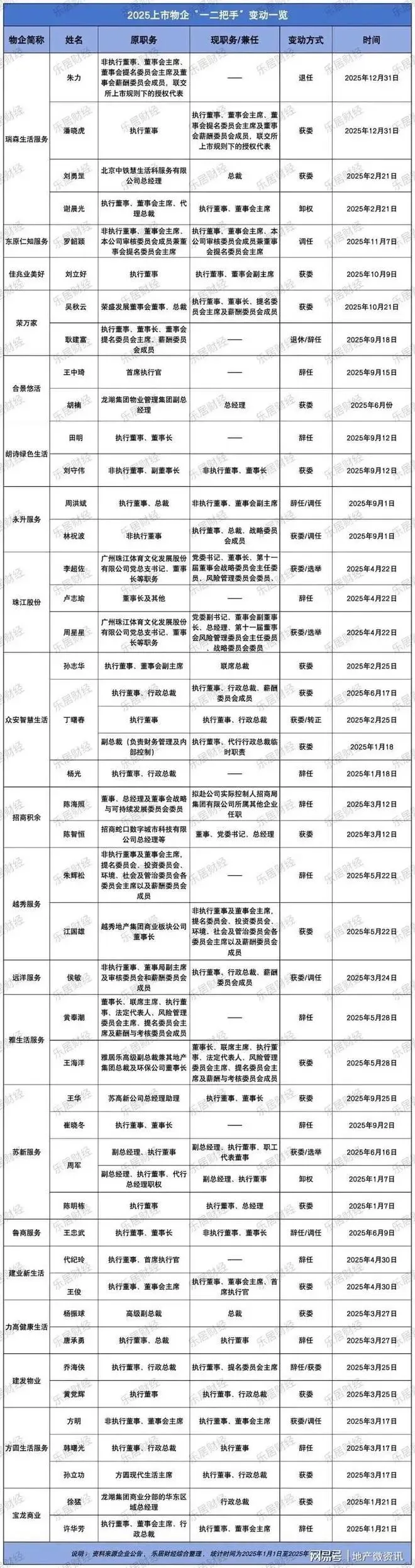 据乐居财经《物业 K 线》报道称,2025 年 20 家上市物企换帅,涉及 45 位高管,28 位新任核心高管中12 位来自关联地产方!