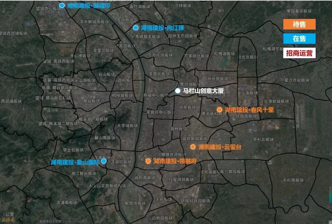 (湖南建投地产集团在长沙在售/待售项目分布图)