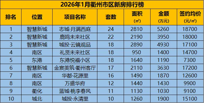 据衢州房天下数据监控中心统计,2026年1月份衢州城区共计3个项目获批3张商品房预售许可证。