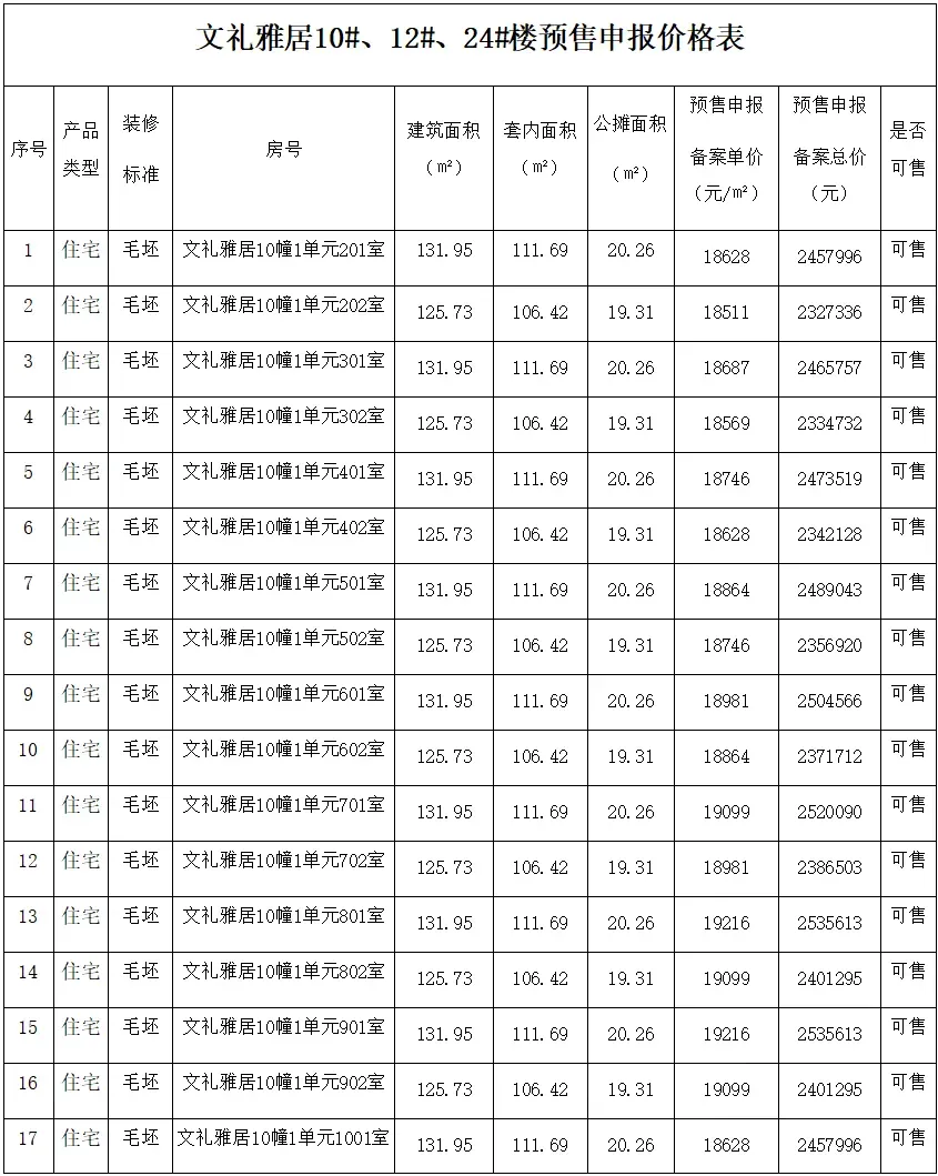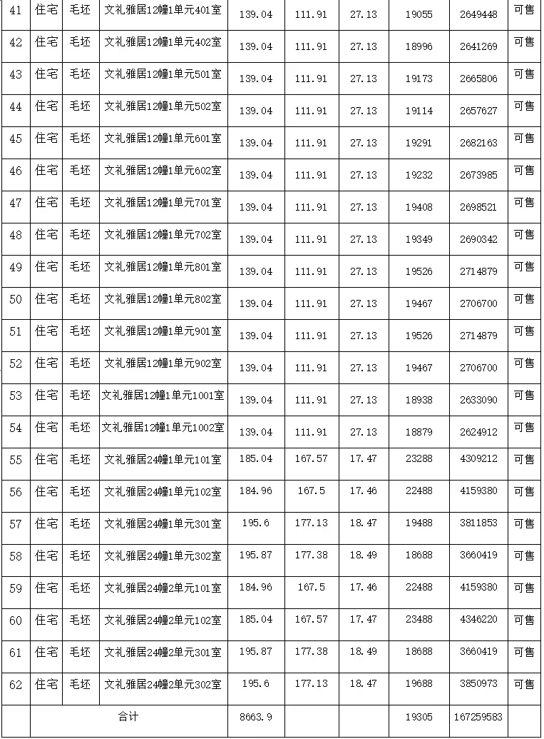 本次办理10、12、24#楼共计3栋楼预售证,住宅建筑面积8663.9㎡,合计62套,面积段为125.73㎡-195.87㎡,预售申报均价19305元/㎡。