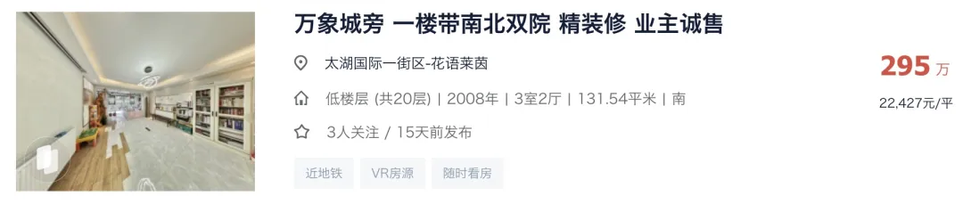 靠近万象城,近4号线地铁,房东诚心出售,报价125万,单价不到1.3万。