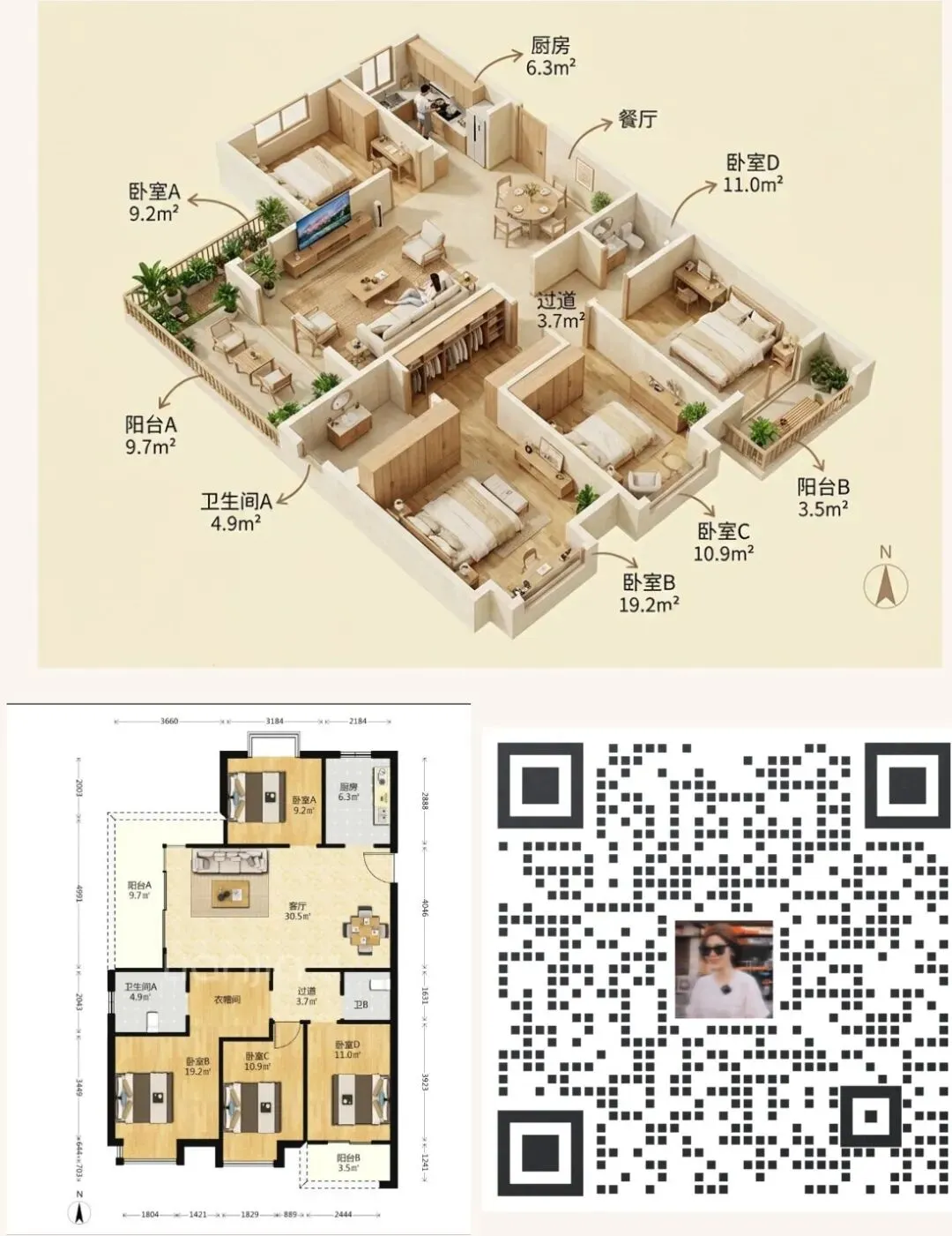 该房源单价不到8千!滨湖145平大户型,4室2厅2卫,毛坯次新房,总价115万。