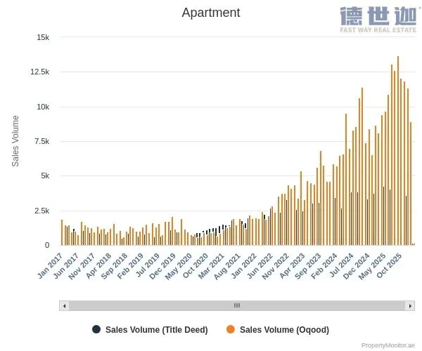 ▲ 2026年1月迪拜公寓二手与期房销售量对比