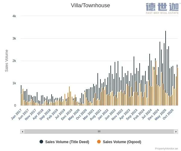 ▲ 2026年1月迪拜别墅二手与期房销售量对比