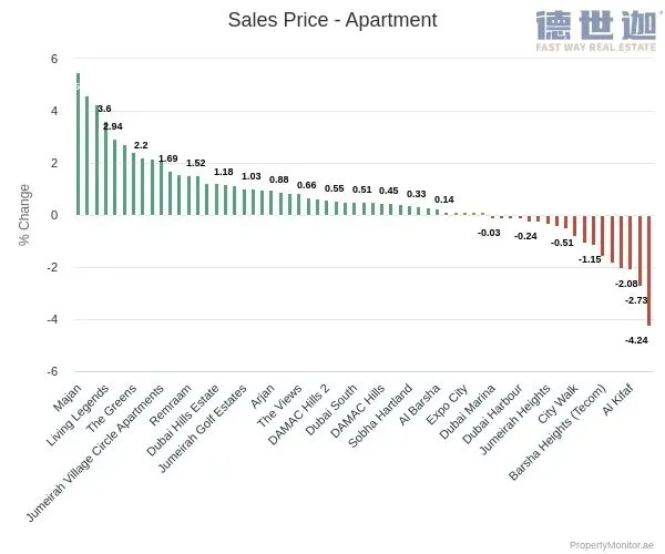 ▲ 2026年1月迪拜各区域【公寓】销售价格环比变化