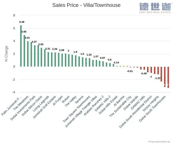 ▲ 2026年1月迪拜各区域【别墅】销售价格环比变化