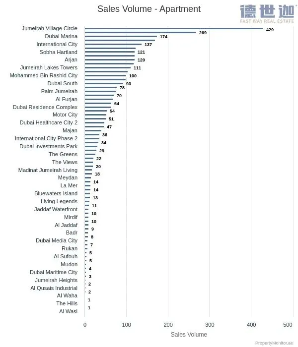 ▲ 2026年1月迪拜各区域【二手公寓】交易数量