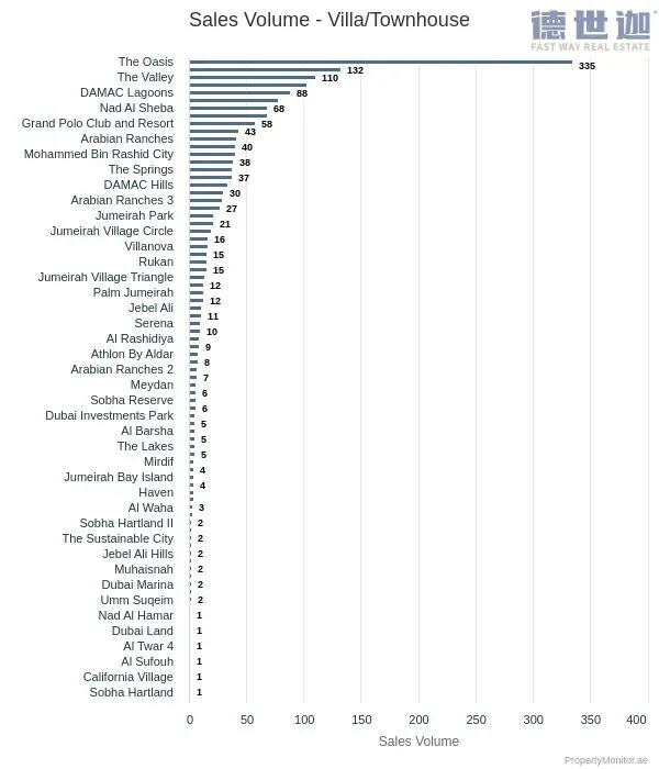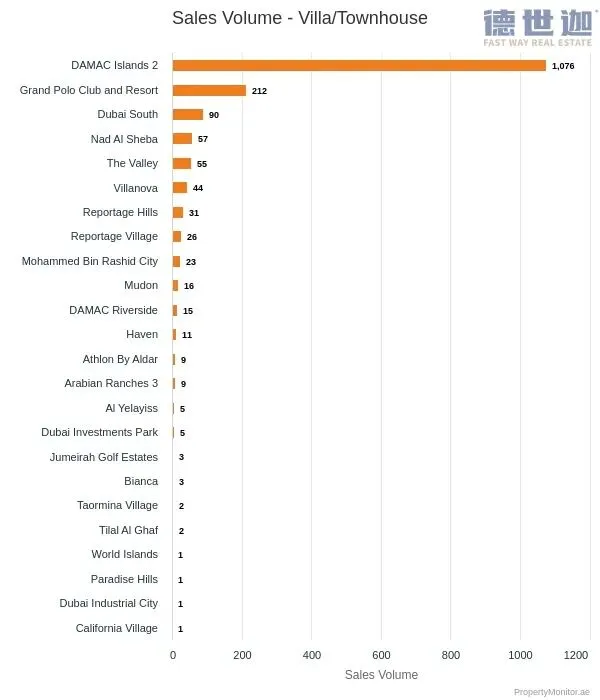 ▲ 2026年1月迪拜各区域【二手别墅】交易数量