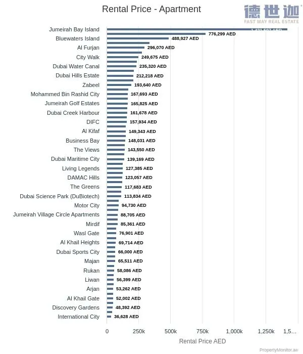 ▲ 2026年1月迪拜各区域【公寓】房产租赁价格(迪拉姆)