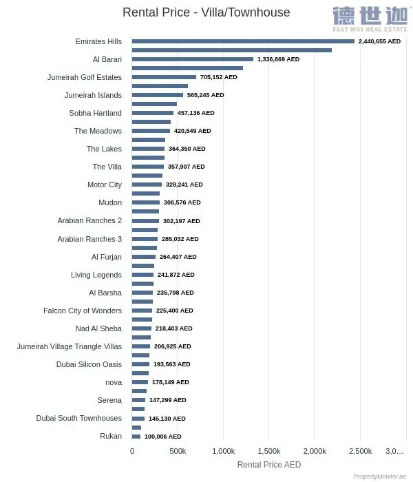 ▲ 2026年1月迪拜各区域【别墅】房产租赁价格(迪拉姆)