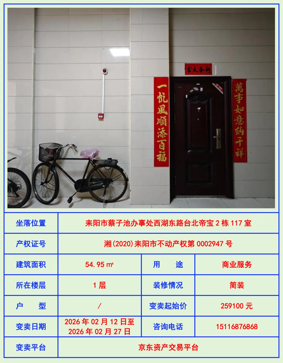 变卖事项咨询和看房联系电话:15116876868