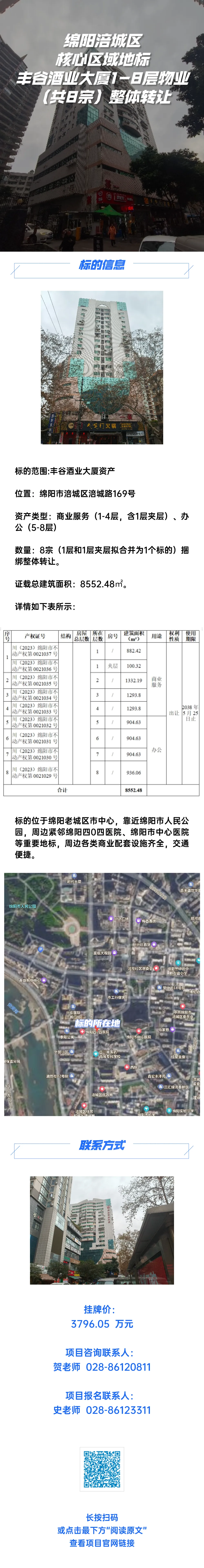 >【商业房产】绵阳当地人都知道的核心区域地标,丰谷酒业大厦1-8层物业整体转让!