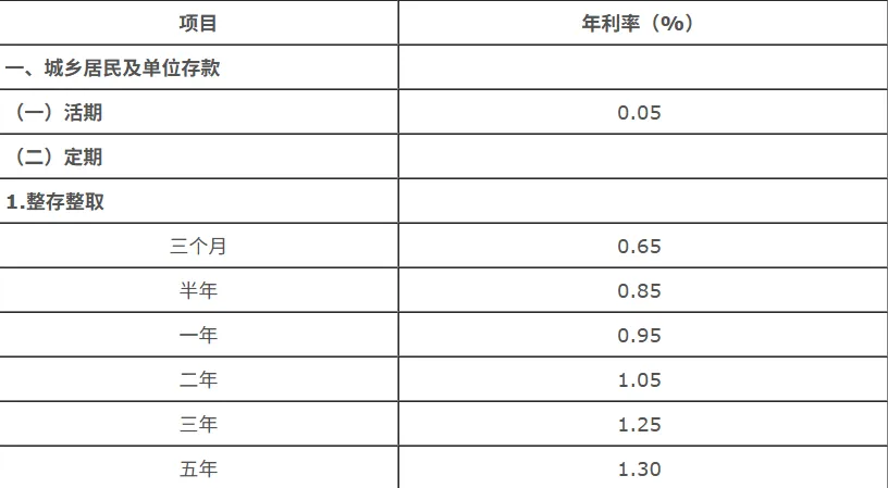 几年前的5年期定存利率是2.75%,现在的5年期定存只有1.3%,去年年底四大行直接取消了5年期的大额存单,未来的存款利率只会更低。