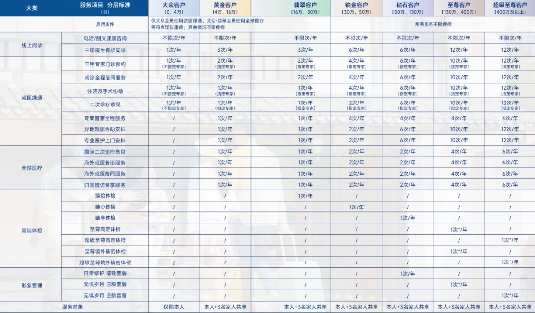 像目前太平洋人寿的产品,只要保费到达一定的门槛,就可以享受三甲医院的就医绿通,陪同就诊,海外就医,高端体检等等。