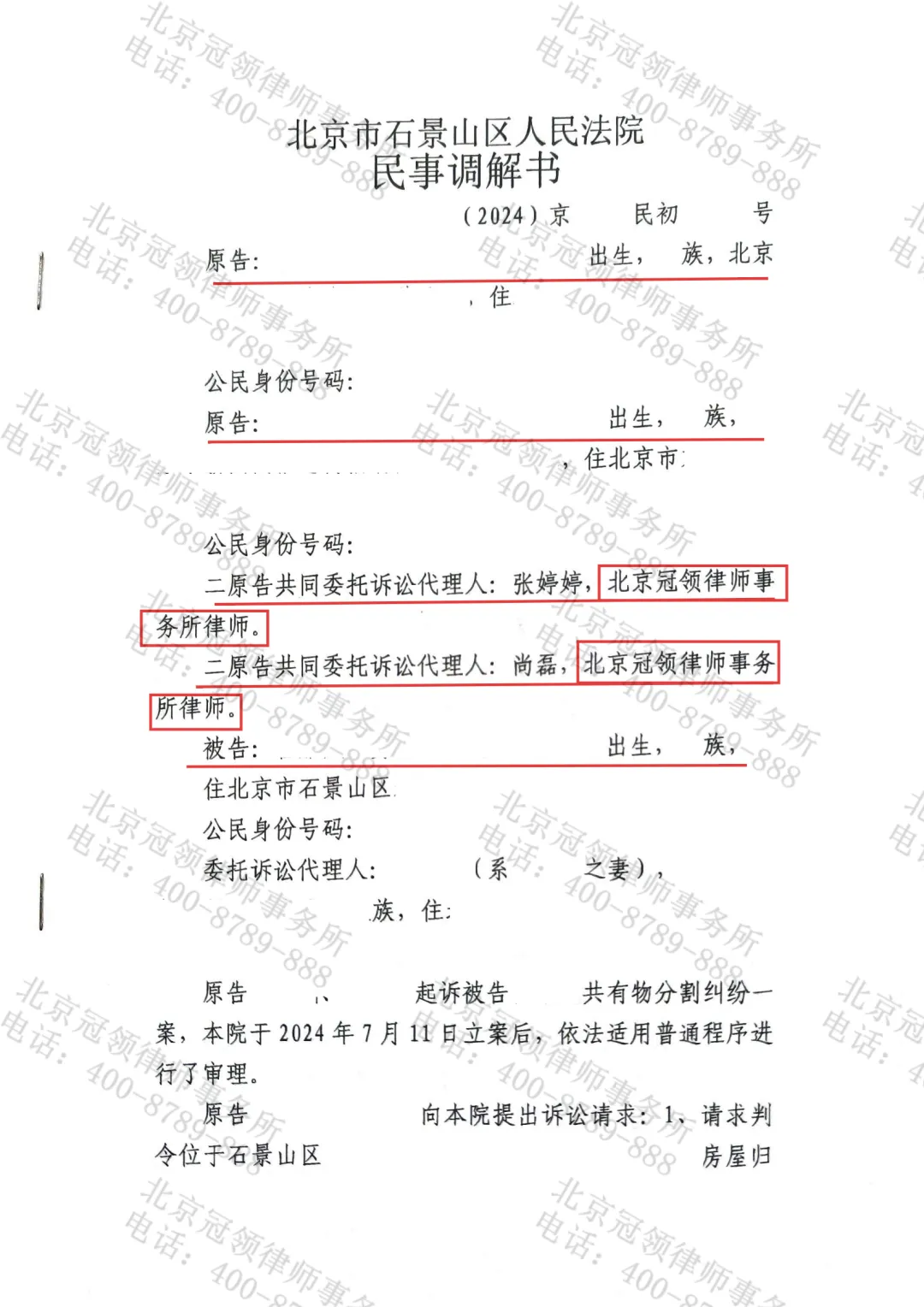 产权问题解决后,冠领律师立即启动共有物分割诉讼。考虑到三兄妹的矛盾持续多年,此前僵持不下的原因也有各方经济条件有限,难以折价分割房产的现实因素,但如今已具备折价分割的条件,律师遂将调解作为优先选项。