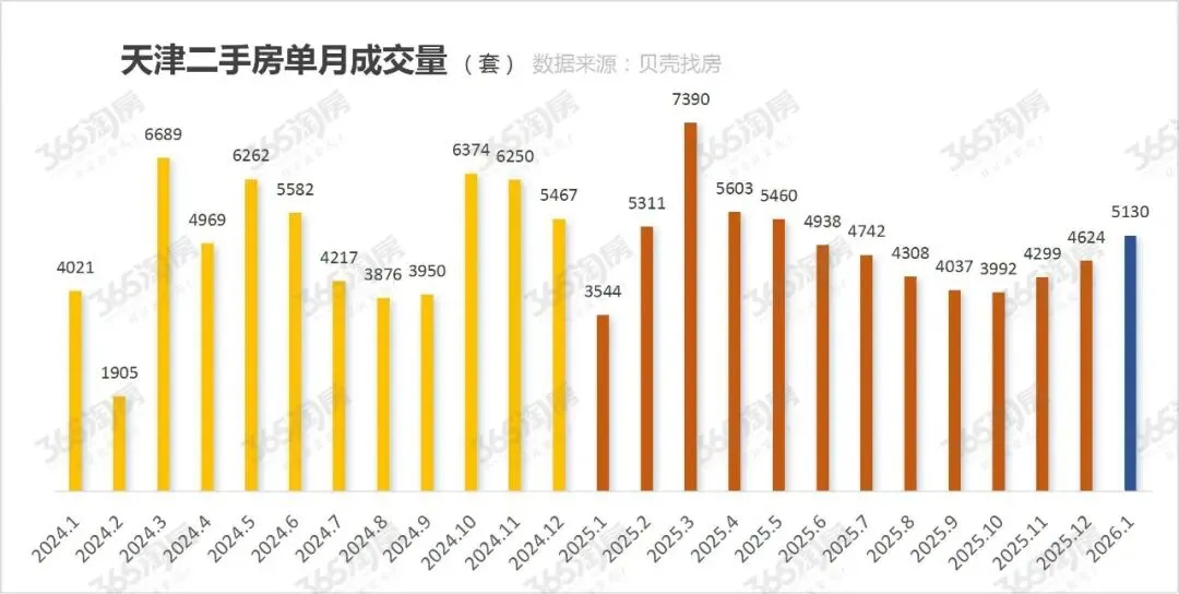 根据贝壳数据,1月成交5130套,比2025年12月增长10%。