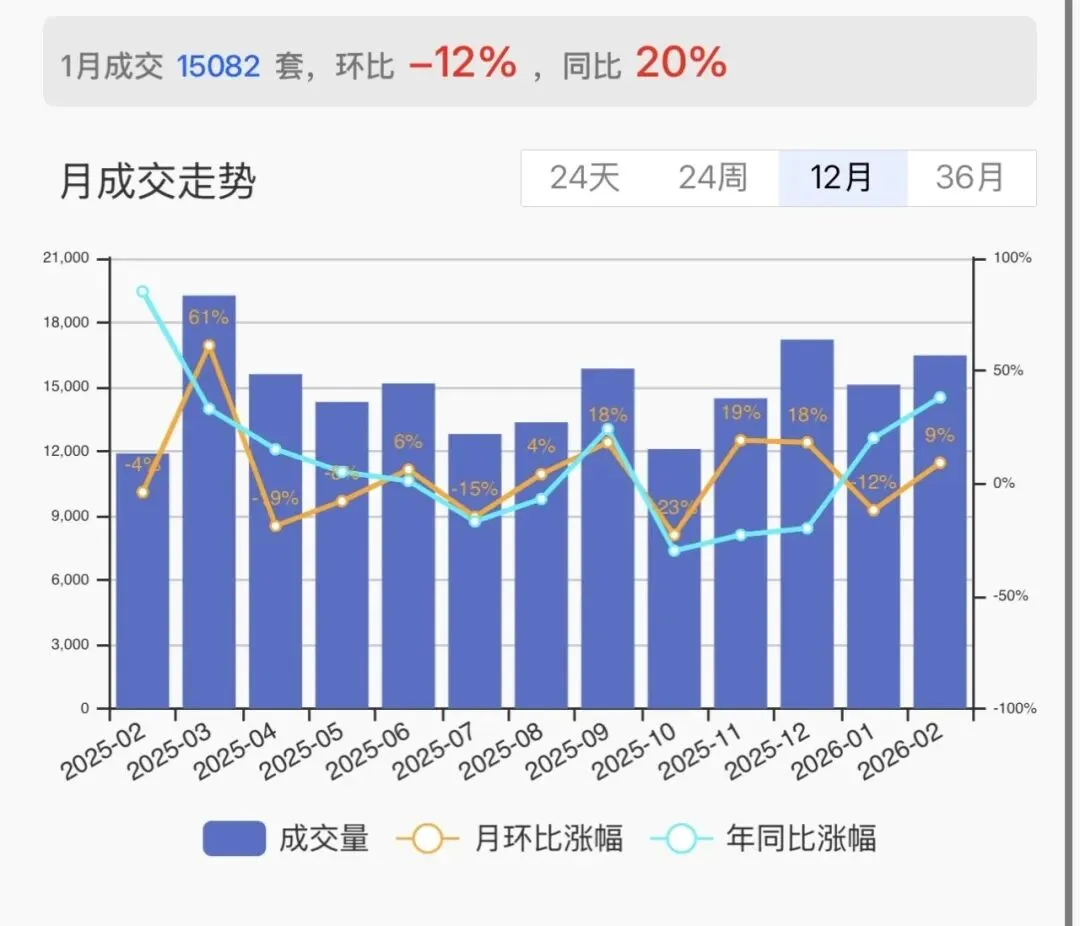 真正有参考价值的是同比:相比2024年1月的12460套,今年1月大涨21%!
