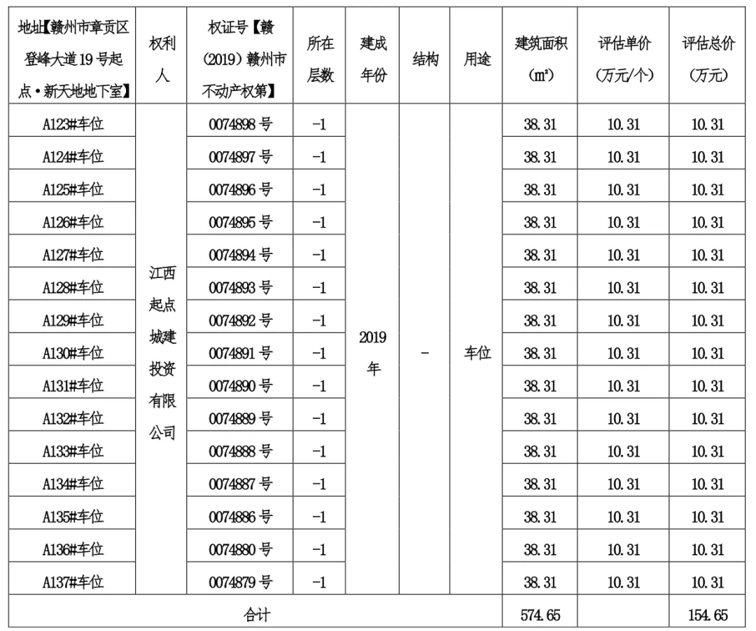 ▲ 赣州起点新天地地下室车位15个车位评估信息