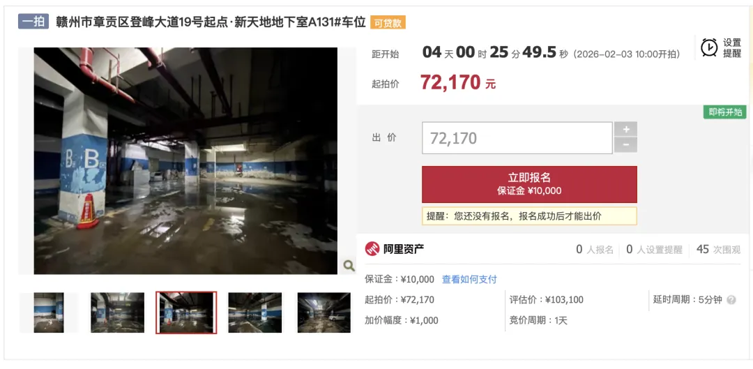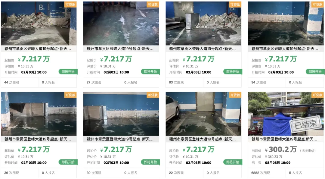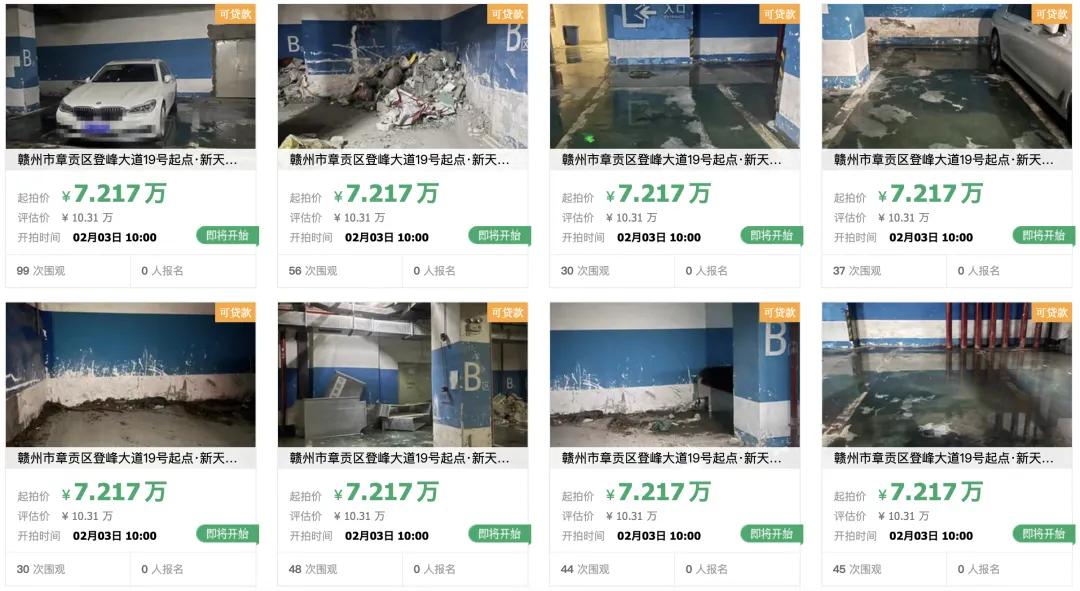 近日,因江西起点城建投资有限公司的销售合同纠纷案,其所有的赣州章江新区起点壹中心小区 15 个地下车位上架拍卖。