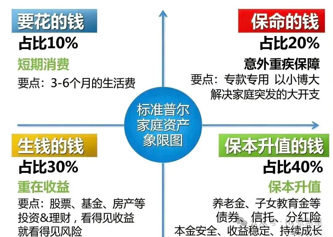 人这一生会学习很多课程,但很多人都缺一门课:家庭资产配置。国际通用的“标准普尔家庭资产象限图”适用于绝大多数家庭。