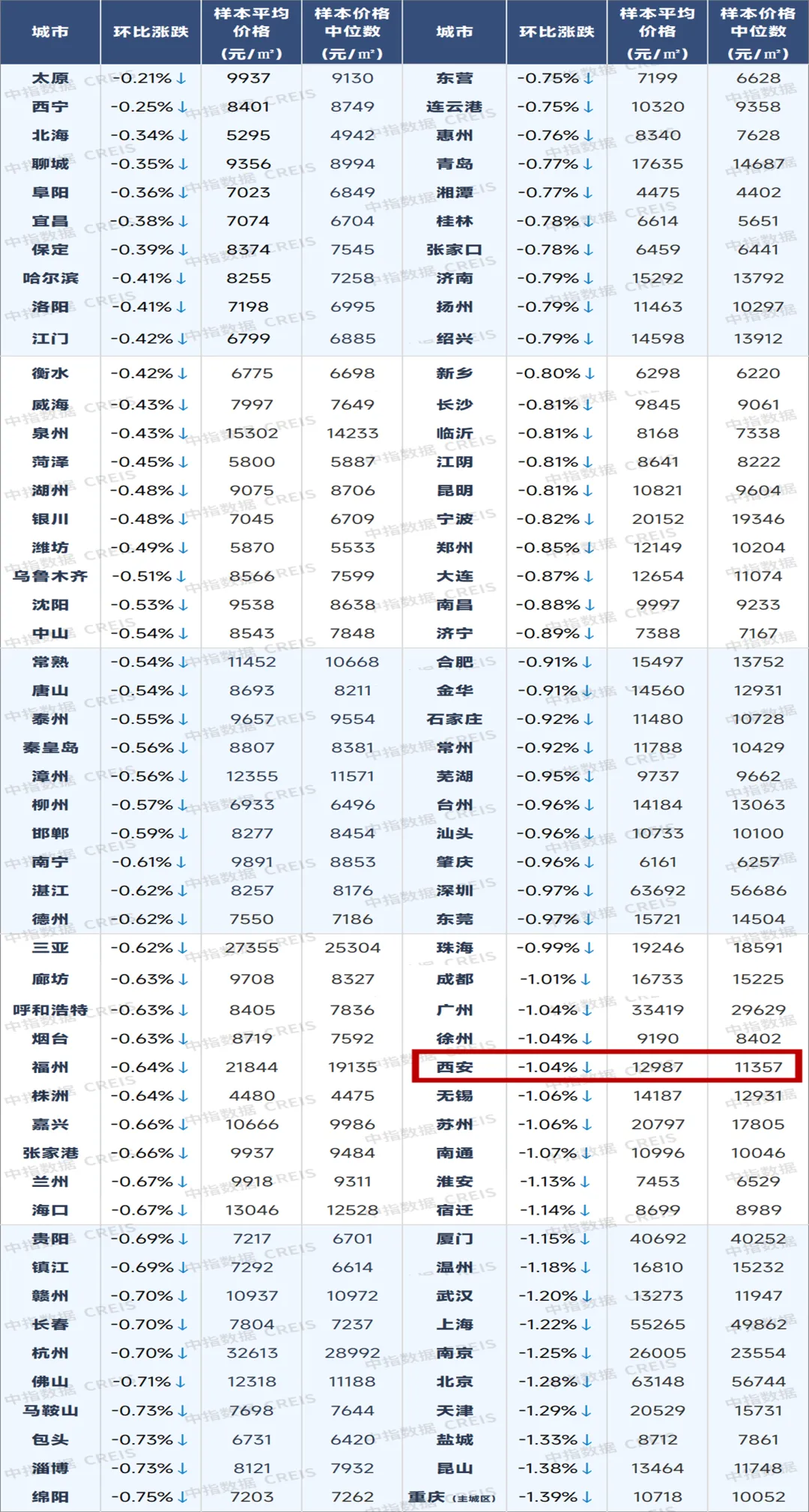 1月百城价格指数数据发布,西安新房微涨,二手房持续下跌。