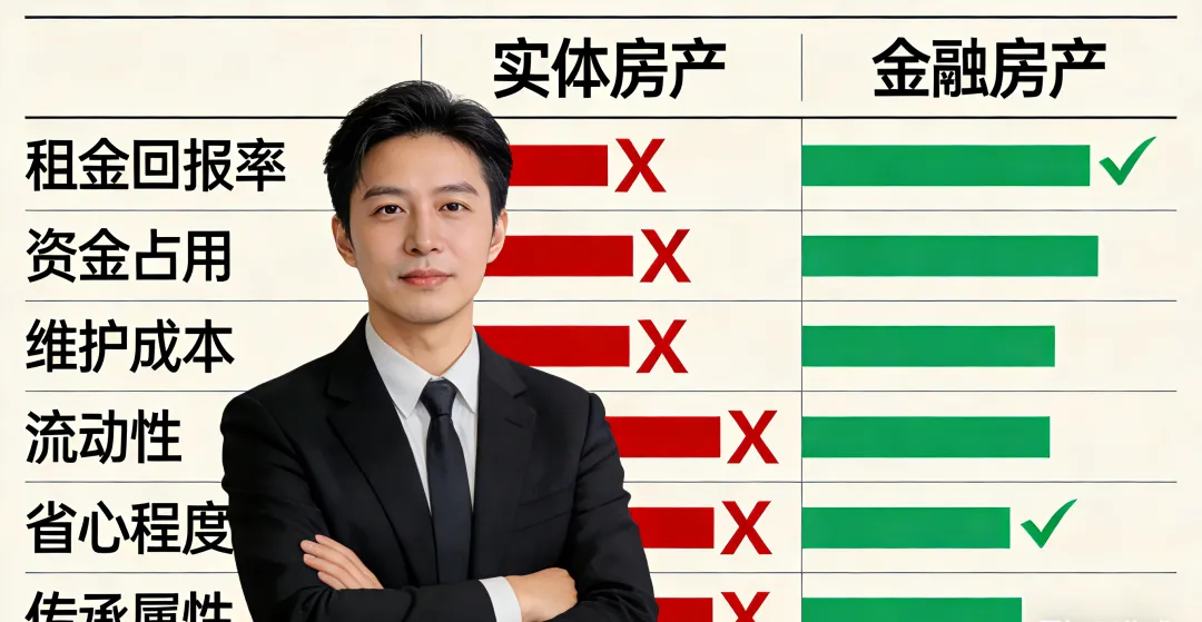 结论一目了然: 在这场模拟中,金融房产在资金使用效率、现金流稳定性、持有成本、省心程度、长期确定性和传承优势等多个维度,实现了对传统投资房产的“降维打击”。它不再是“0和1”的替代,而是一种理念的升维。
