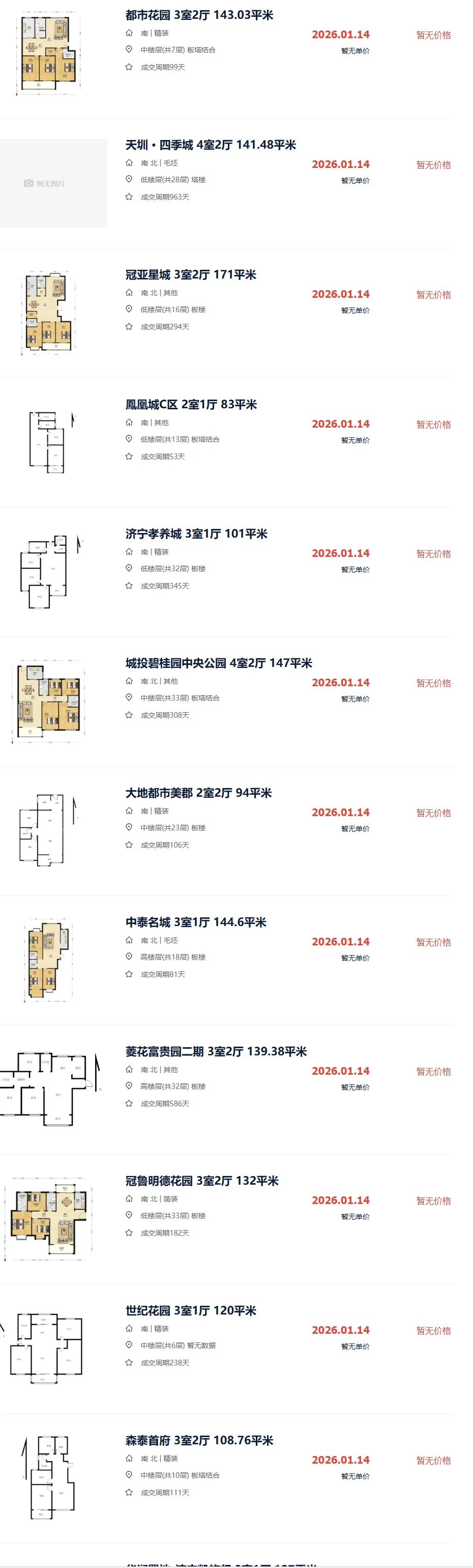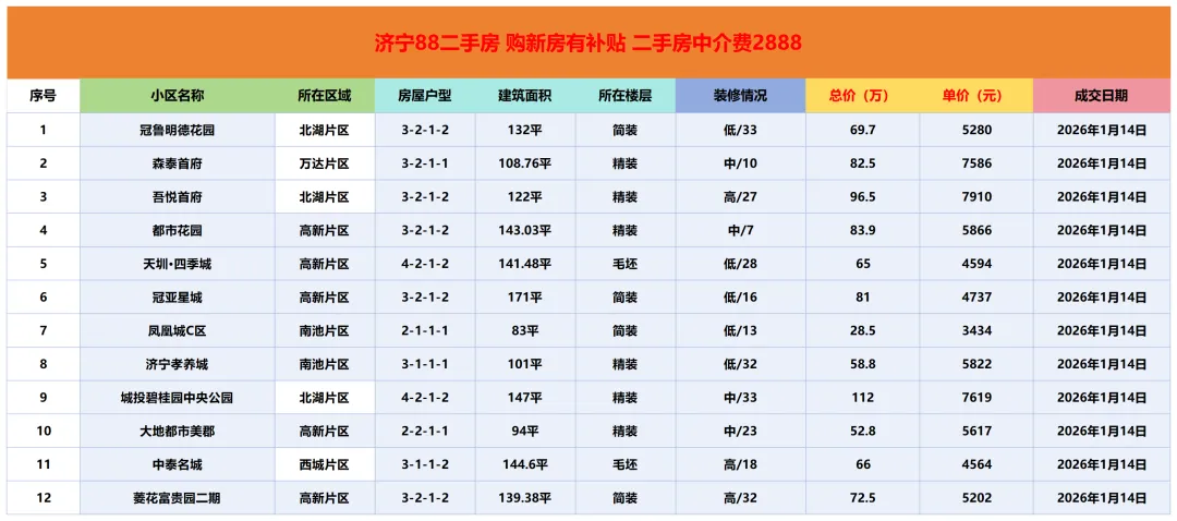 济宁二手房成交市场价参考|1月14日
