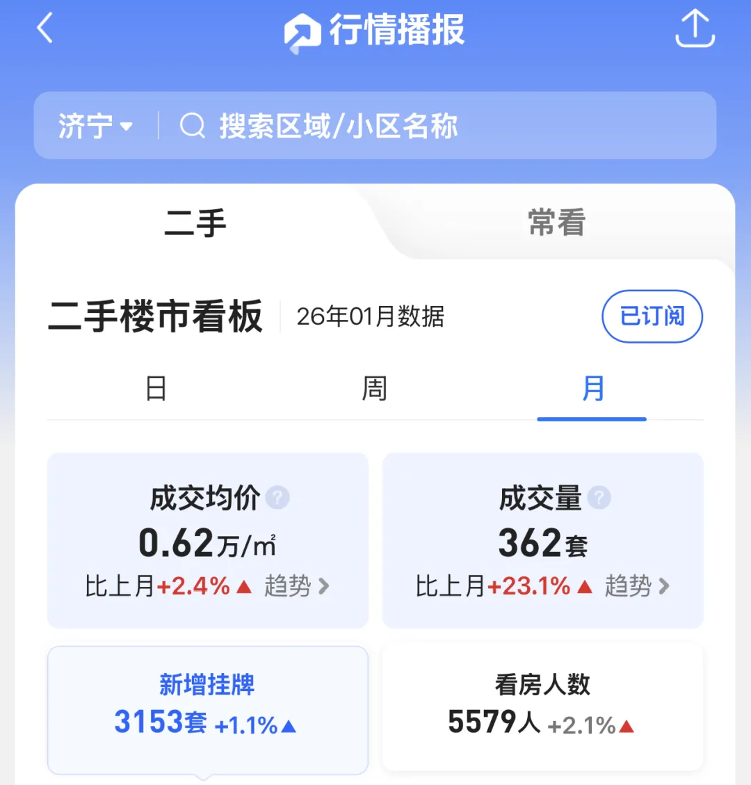 >济宁二手房每月成交数据分析|26年1月