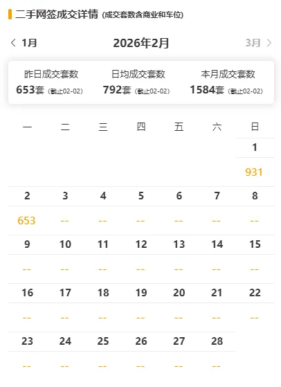 上海二手房最新成交量:昨日(2月2日)网签653套(含住宅、商业、车位等)。
