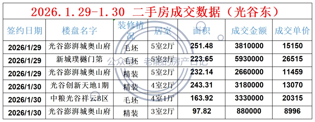 2026.1.29-1.30 二手房成交数据 (光谷东)