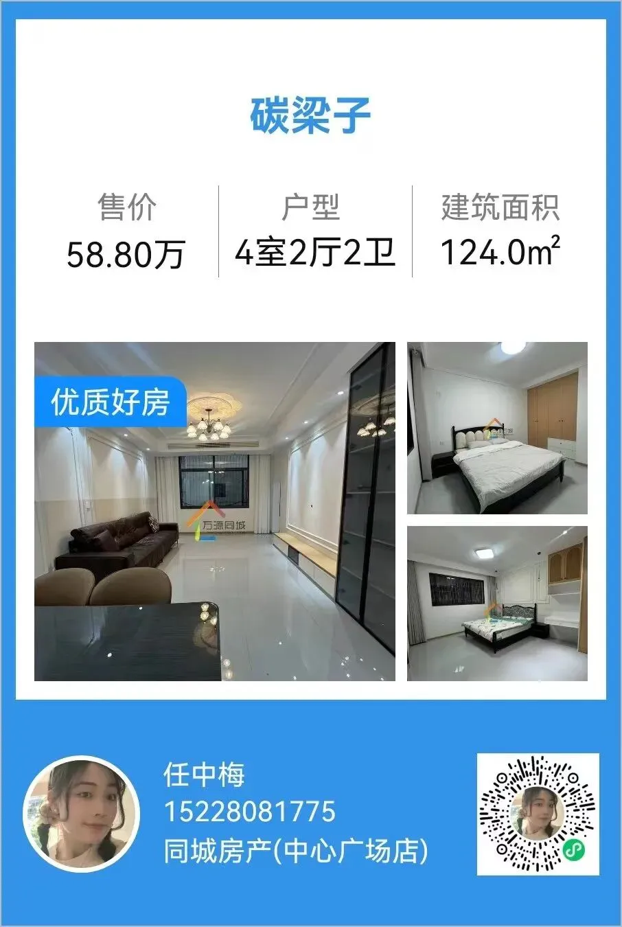 >【万源房产】碳梁子,精装4室2厅2卫,124平米,总价58.8万