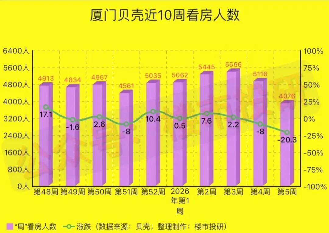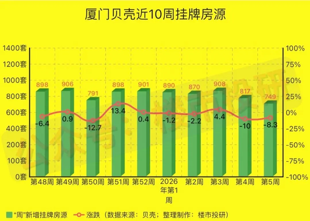 一、2026年第5周(1月26日-2月01日),厦门贝壳平台二手房相关数据一览: