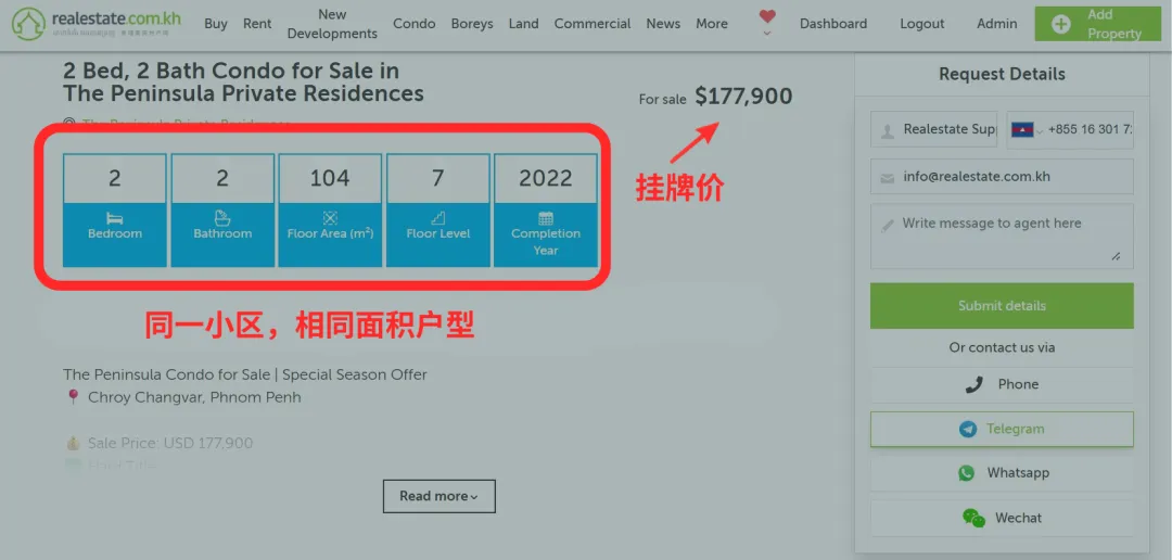 举例来说,假如你在金边水净华区拥有一套2房2卫的河景公寓,准备将其出售。市场调研后发现,同小区同户型不同业主的3套房产挂牌价分别为:$177,900,$195,000,$245,000,那么可以初步判断,$170,000~$250,000是当前市场可以参考的价格区间。二、设定你的底线价(明确自己可以接受的价格)