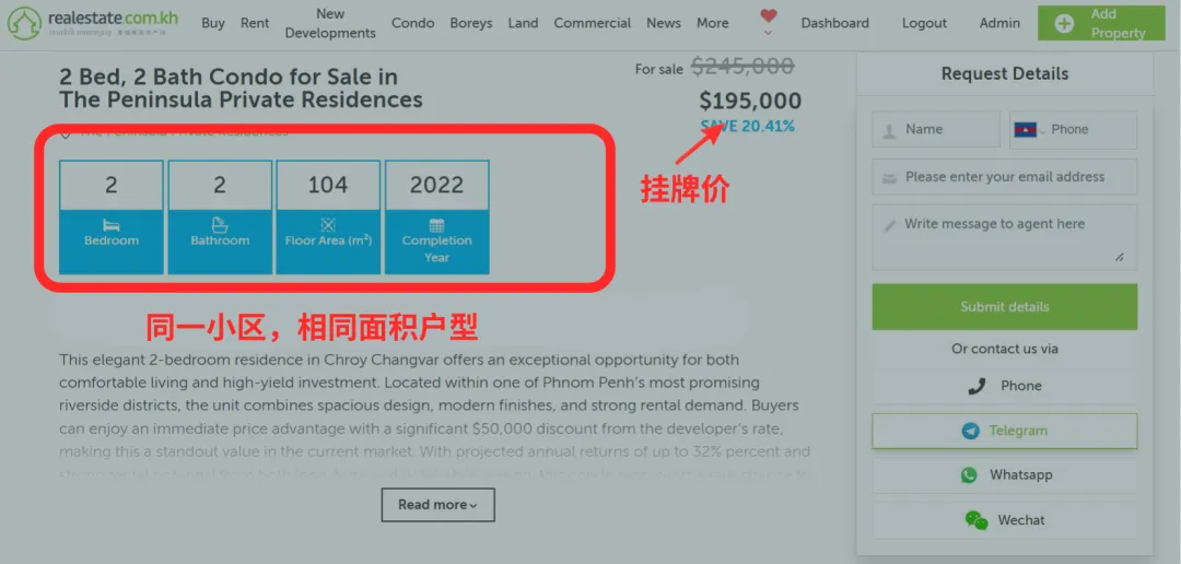 咨询少、看房少,通常说明价格偏高或展示不够好,或者房源展示方式不够理想。独家房源通常能获得更高质量的资源支持,例如专业摄影和视频制作、更精准的客户匹配、更强的线上曝光,以及在代理机构核心展示位置的推荐。专业机构也能在定价和谈判过程中,协助业主做出更理性的判断。例如,通过事实说明同小区更高楼层的成交价格更高,或你的单位在装修和家具配置上更具优势。这些客观依据,能够帮助买家理解你的定价逻辑,也能让整个谈判过程更加顺畅、专业。如果你在定价过程中仍然感到不确定,或希望获得更贴近真实成交的数据支持,建议咨询本地专业平台协助判断。作为柬埔寨领先的房地产平台,Realestate.com.kh长期深耕本地市场,覆盖大量真实成交与在售数据,并与经验丰富的专业中介团队合作,能够从市场角度、成本角度和销售策略角度,协助你制定更合理、更可执行的出售方案。