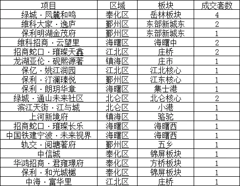 宁波新房每日成交明细