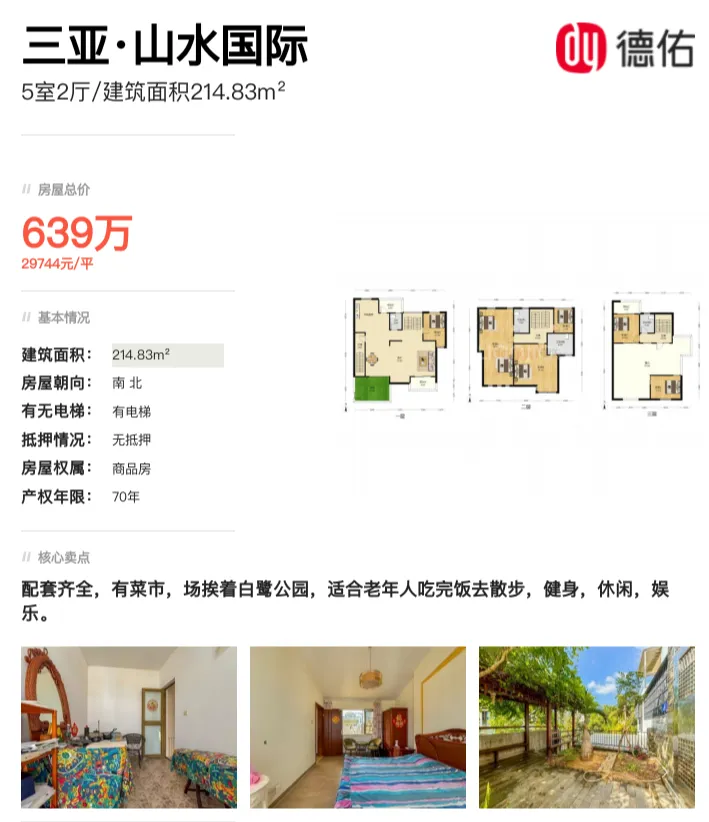 推荐理由:三亚主城区,商圈配套成熟,家门口就是白鹭公园,现房交付,性价比高