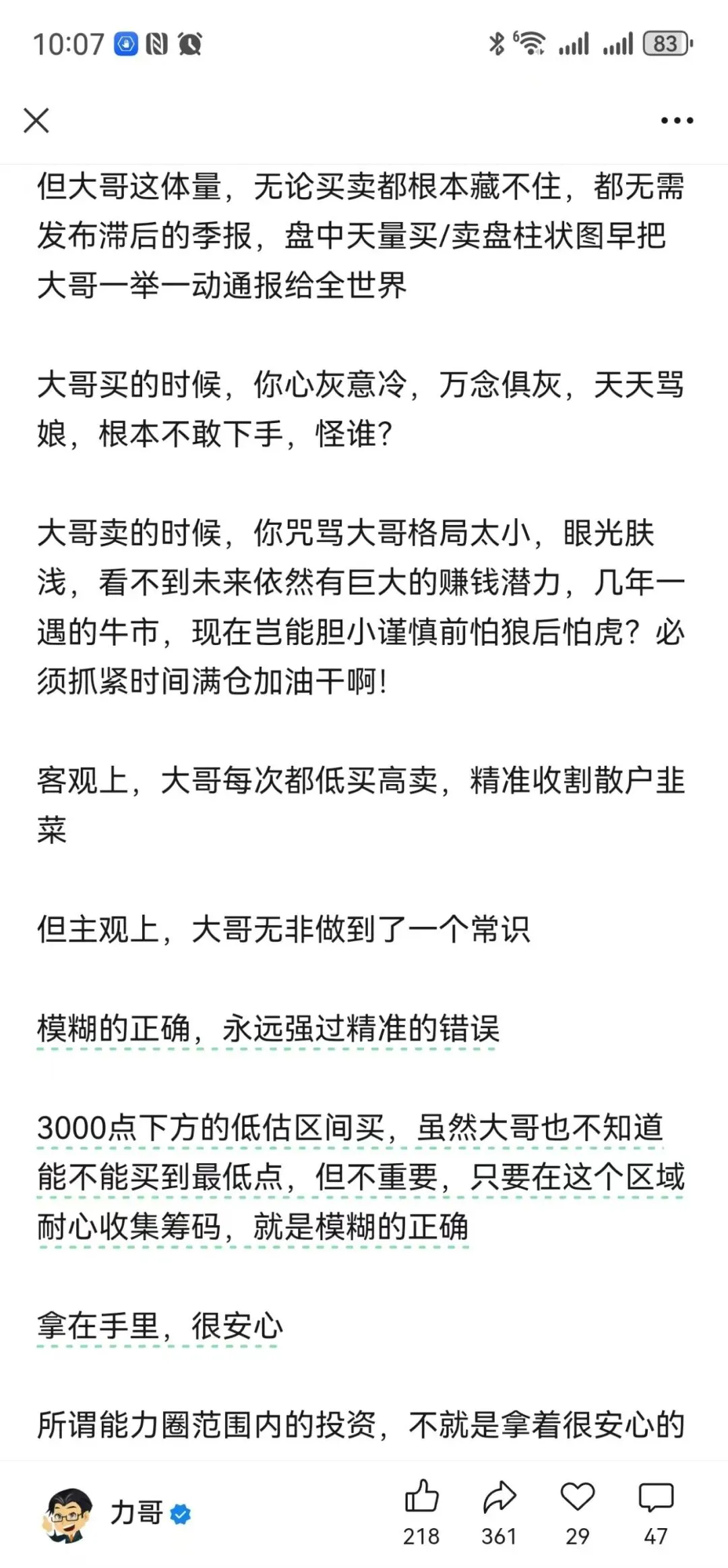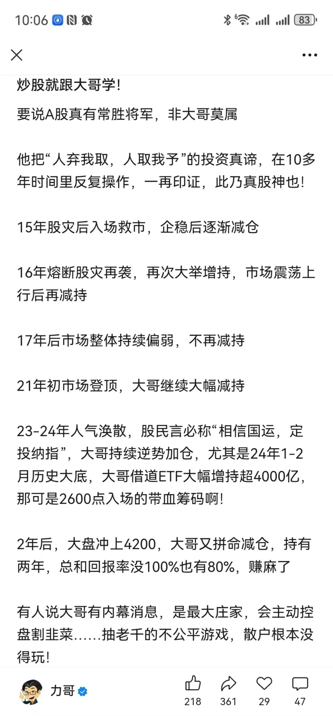 公众号力哥发了篇文章:《炒股就跟大哥学》