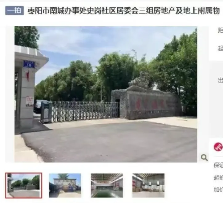枣阳市法院近期推出一批司法拍卖标的,其中包括位于南城办事处史岗社区居委会三组的房地产及地上附属物,总建筑面积为3919.11㎡,房屋结构为钢结构和混合结构。该拍品评估价为3199.01万元,起拍价2399.26万元,保证金200万元,加价幅度1万元。拍卖时间自2026年2月20日10时起至2月21日10时止(延时除外),通过阿里巴巴司法拍卖平台进行。