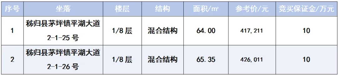 一、标的展示时间:拍卖标的物在秭归县茅坪镇平湖大道所在地公开展示,集中看房时间:2026年3月2日09:00-16:00。请提前联系看房,其他时间自行踏勘。请竞买人务必现场查勘、自行鉴别风险,委托人和拍卖人不对标的物的品质、质量、隐蔽瑕疵等作出任何明示或默示担保。
