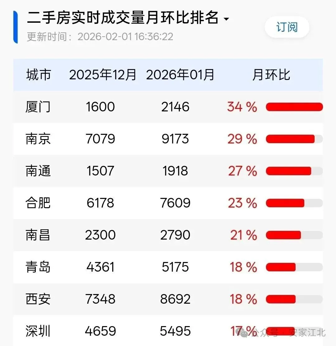 根据相关数据显示,2026年1月南京二手房成交量高达9173套,相较于2025年12月的7079套,成交量暴涨29%,涨幅位居全国第二。