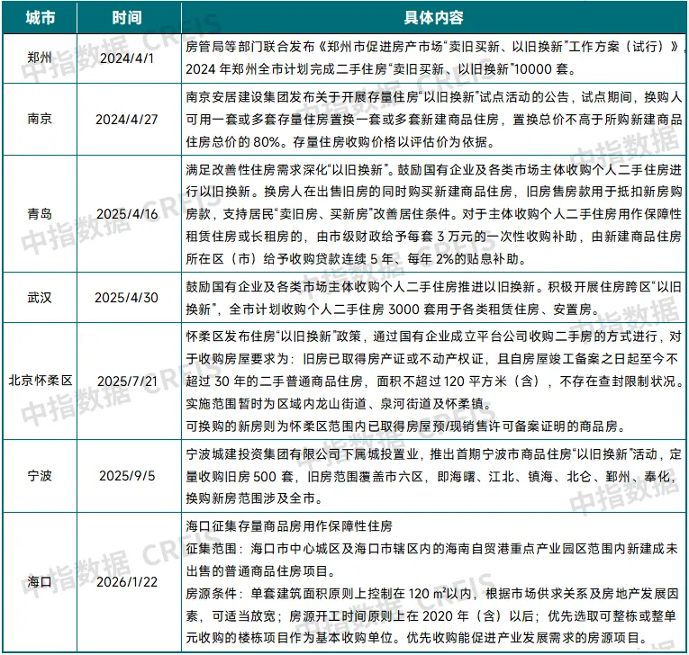 表:2024年以来部分城市收购二手房开展住房“以旧换新”政策内容