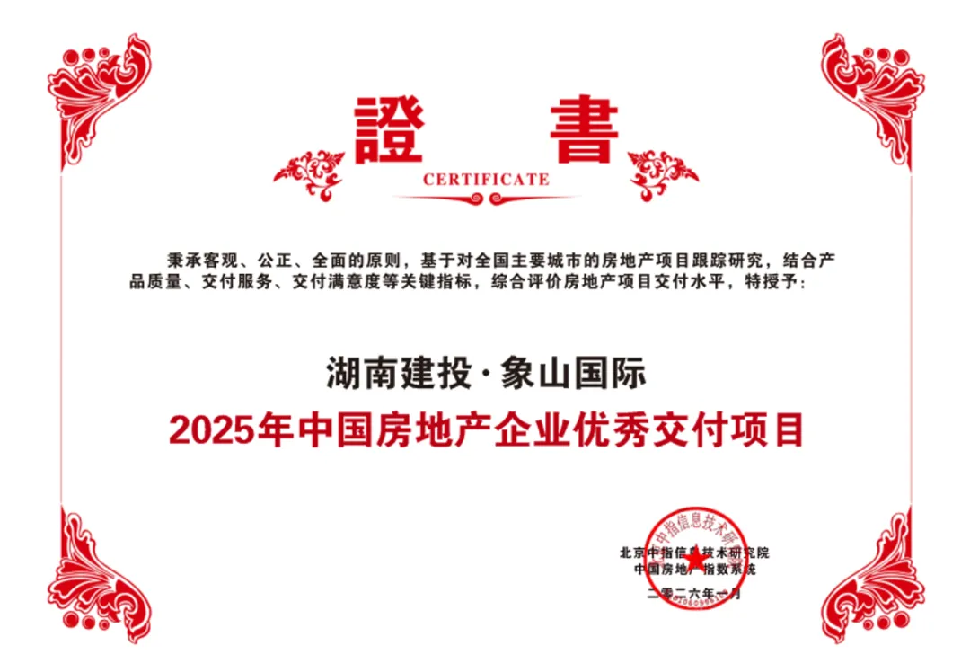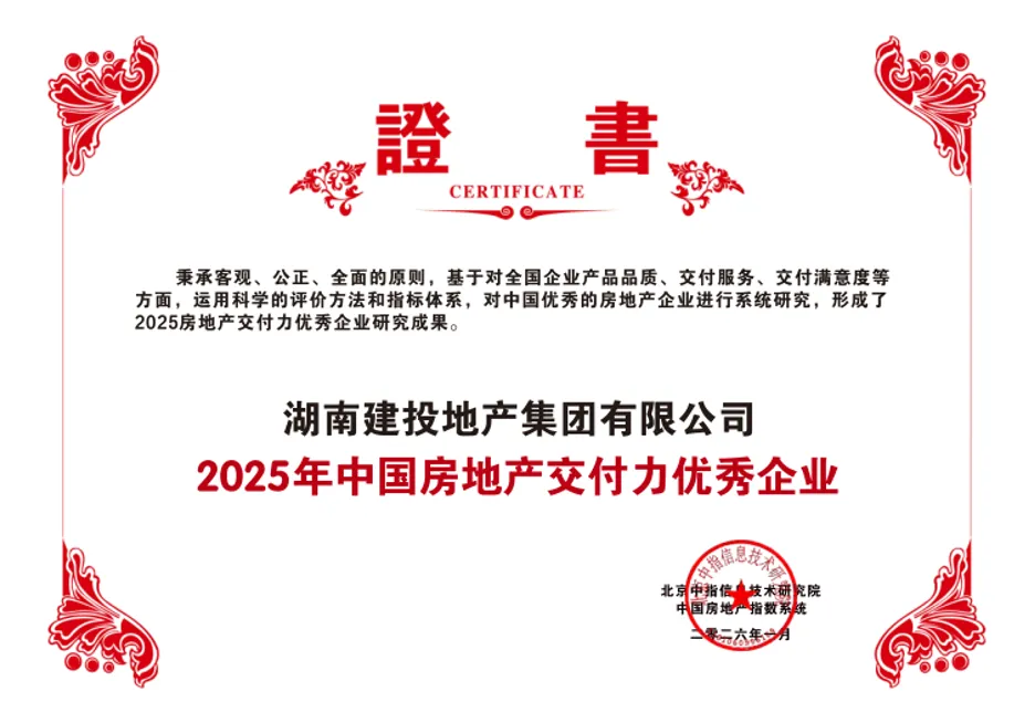 2025年,在房地产市场构建新发展模式的关键阶段,“保交房、防风险”成为核心任务,而“交付力”也成为衡量房企经营稳健性与发展韧性的核心标尺。作为深耕湖湘的省属国企,湖南建投地产集团用扎实的数据和一系列标杆项目的高品质兑现,成功跻身“2025中国房地产企业交付规模排行榜”,并荣膺“2025年中国房地产交付力优秀企业”称号。这不仅是简单的数字兑现,更是对市场承诺的坚定履行,充分彰显了其作为湖南省属唯一地产开发平台的责任担当与综合实力。