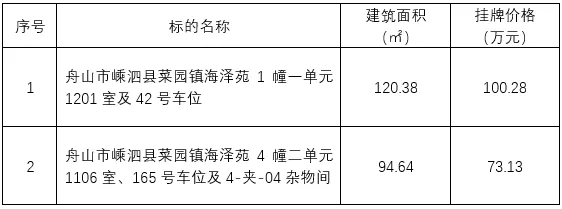 项目名称:舟山市海泽苑2处房产分零转让