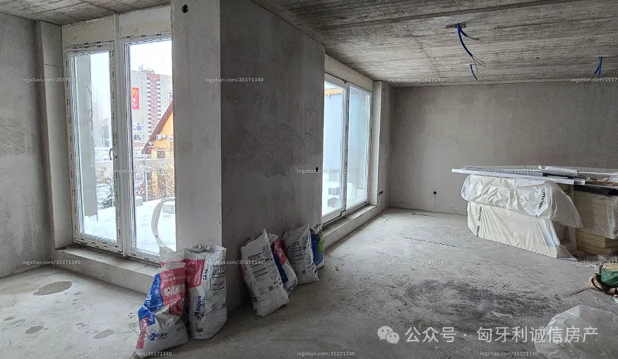 内部门窗: 贴面或覆膜实木平板门或玻璃门,配哑光铬把手(价值90,000福林)。仅提供标准开启方式,尺寸为75x210厘米或90x210厘米标准尺寸。可额外付费定制推拉门系统。