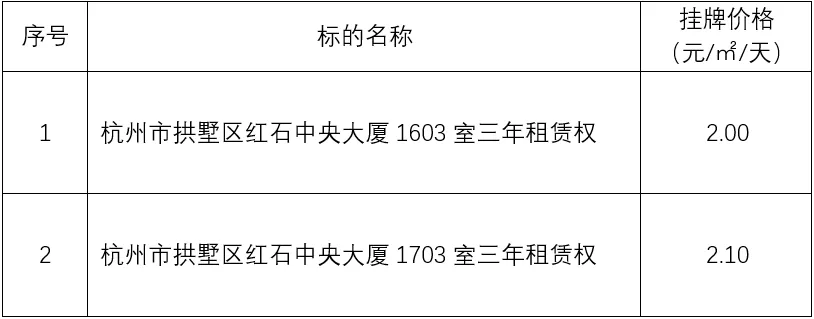 项目名称:杭州市拱墅区红石中央大厦2处房产分零招租