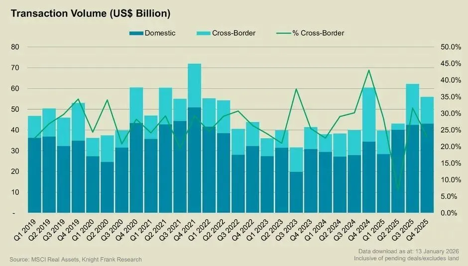 跨境投资大幅下降19%。钱变得“恋家”,只流向东京、悉尼等供应紧张、需求坚实的少数市场。